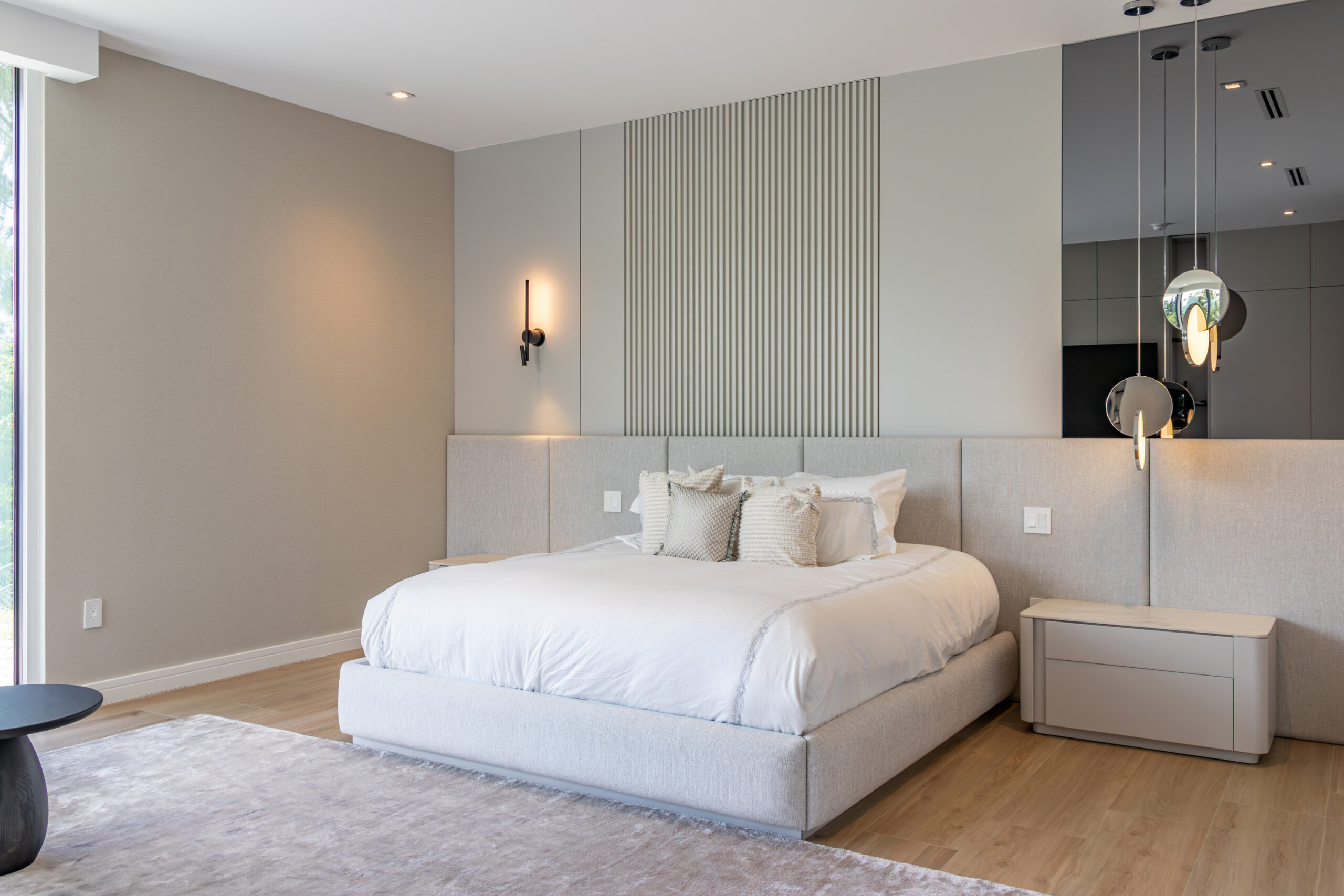 This grand traditional residence sits majestically on an expansive lot, offering ample space and privacy. The exterior features timeless architectural details—graceful arches, elegant moldings, and a stately façade that exudes classic charm. Complementing the main house is a detached cabana, perfect for entertaining or relaxing poolside. Inside, the interiors reveal a sophisticated modern aesthetic, where natural stone surfaces blend seamlessly with refined finishes and clean lines. The harmonious fusion of traditional architecture and contemporary design creates a welcoming yet luxurious home tailored for today’s lifestyle.