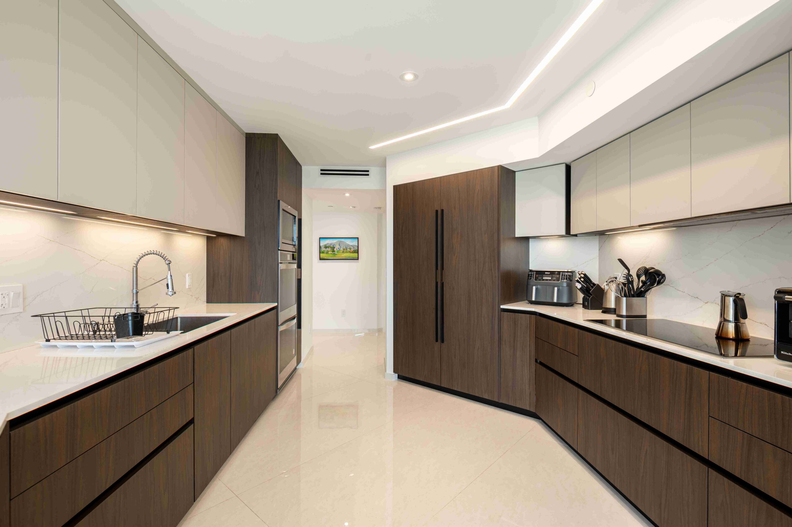 This Williams Island condo underwent a complete gut renovation, transforming the space with a thoughtful redistribution of bedrooms and bathrooms. Modern finishes flow throughout, including custom millwork, porcelain tile flooring, and a fully integrated lighting system. Every detail was carefully curated to create a contemporary, cohesive interior that balances functionality with sophisticated design.