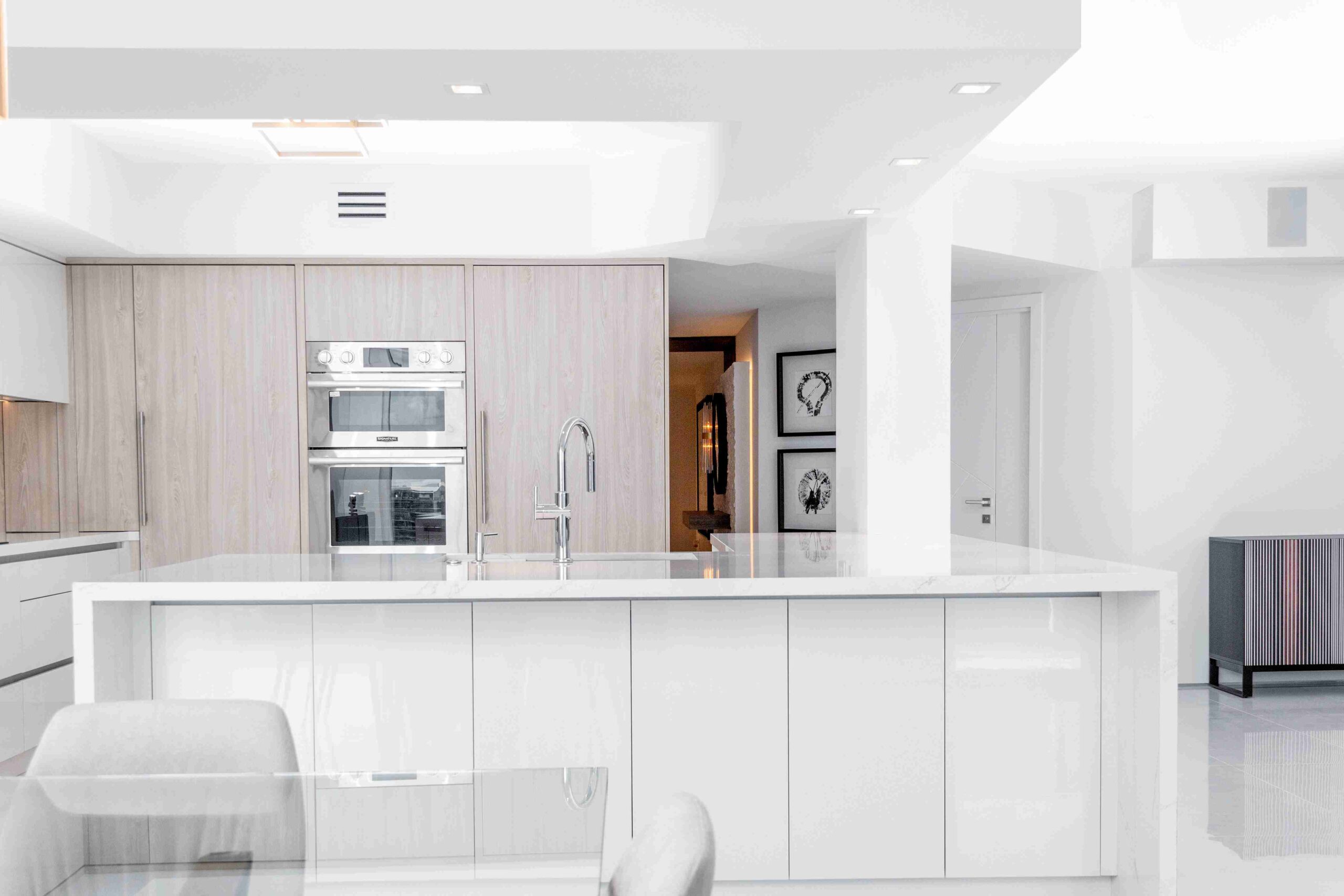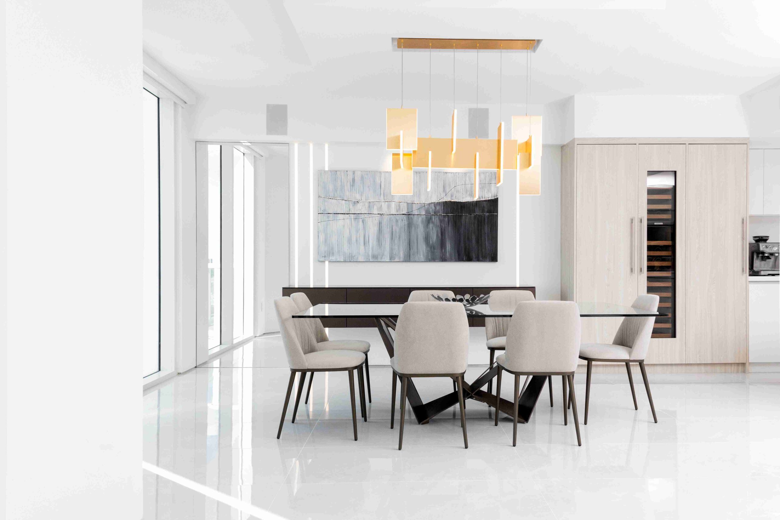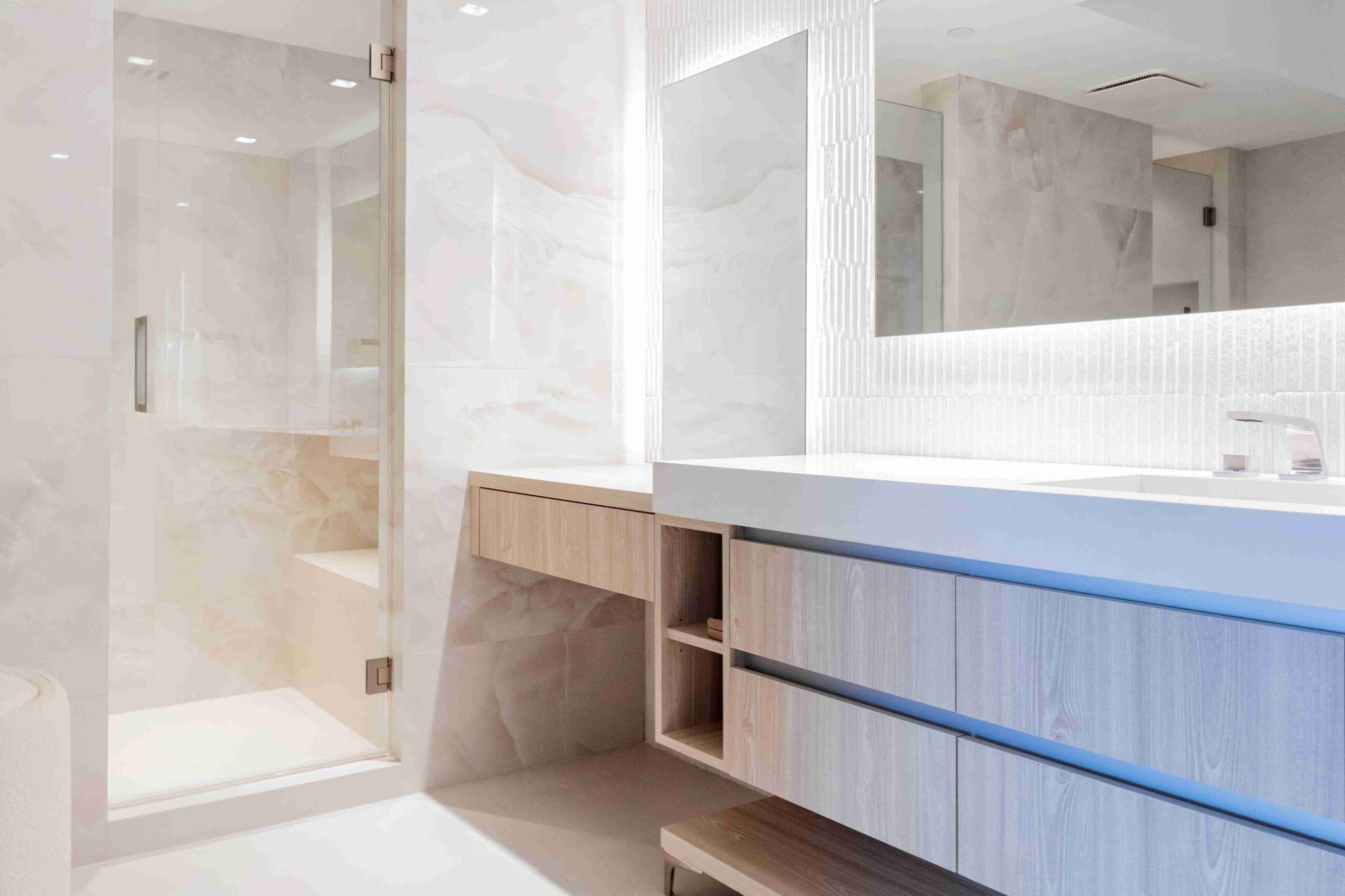 This Aventura Peninsula condo combines modern luxury with meticulous attention to detail. Custom millwork paneling features hidden doors and 3D accents, while a lacquered kitchen and bespoke vanities with stone surfaces elevate the interiors. Porcelain tile flooring, base reveal details, and integrated lighting enhance the sense of refined craftsmanship. The home is equipped with state-of-the-art automation and audio/video systems, creating a seamless, sophisticated living experience that balances design, functionality, and technology.