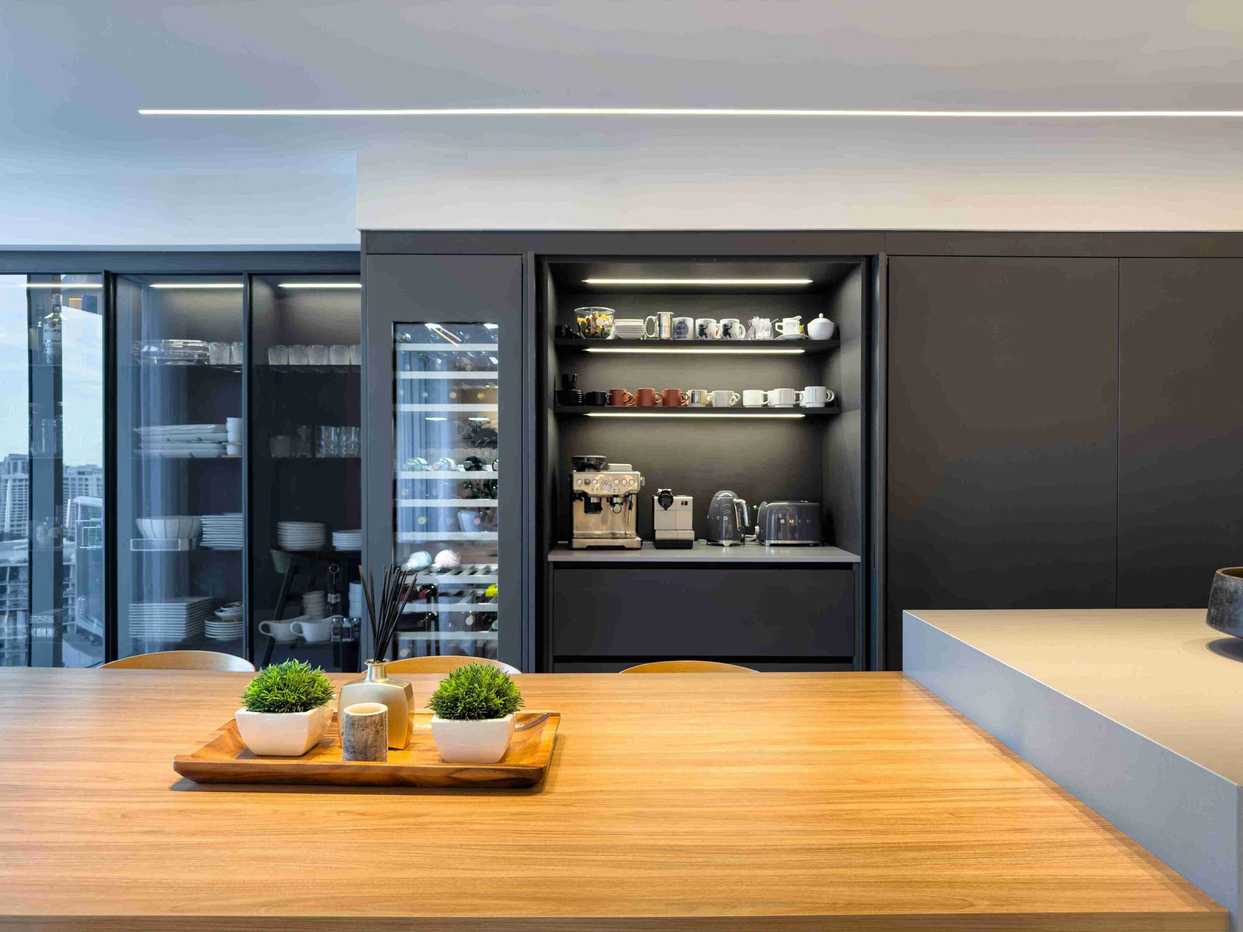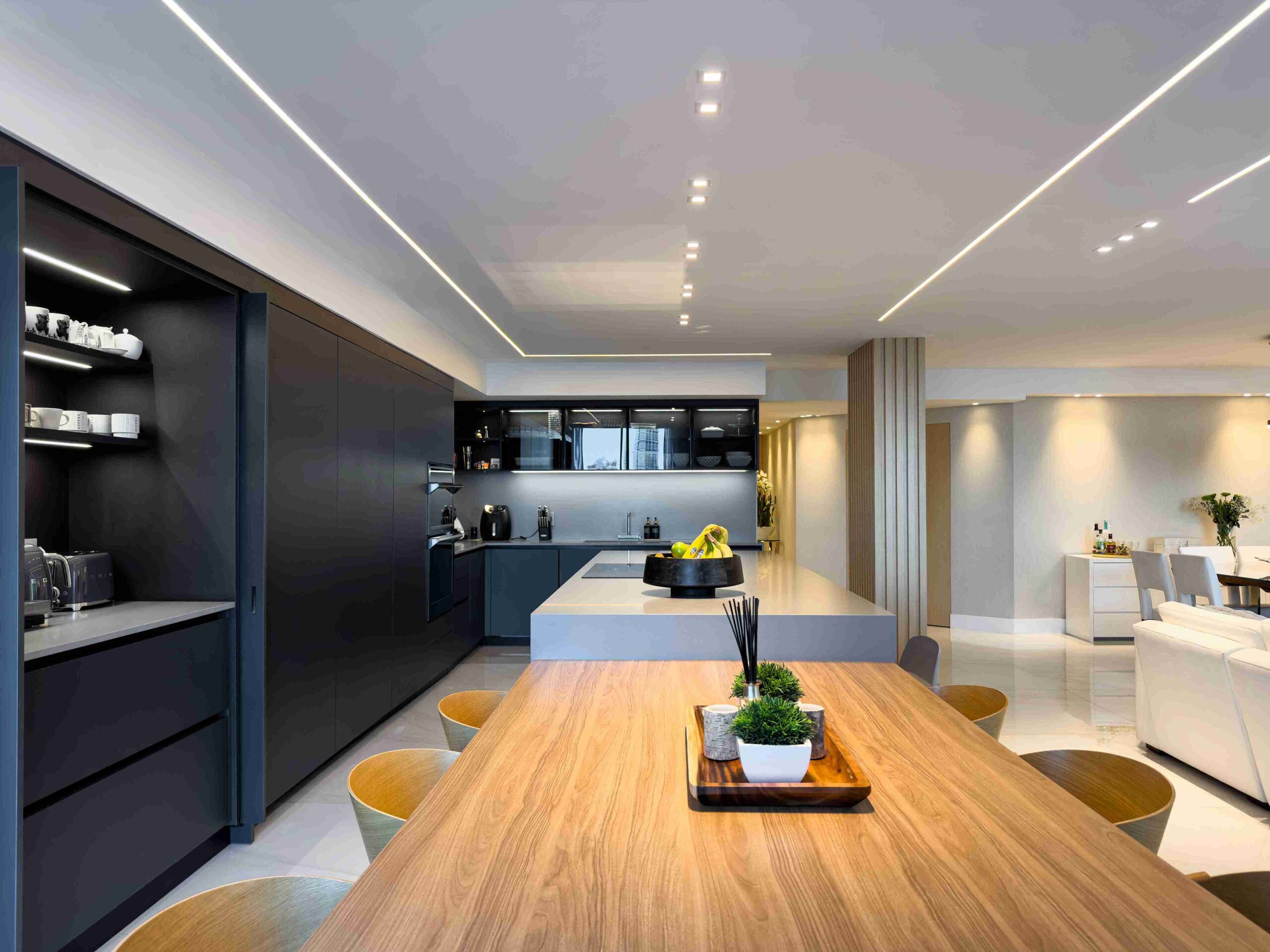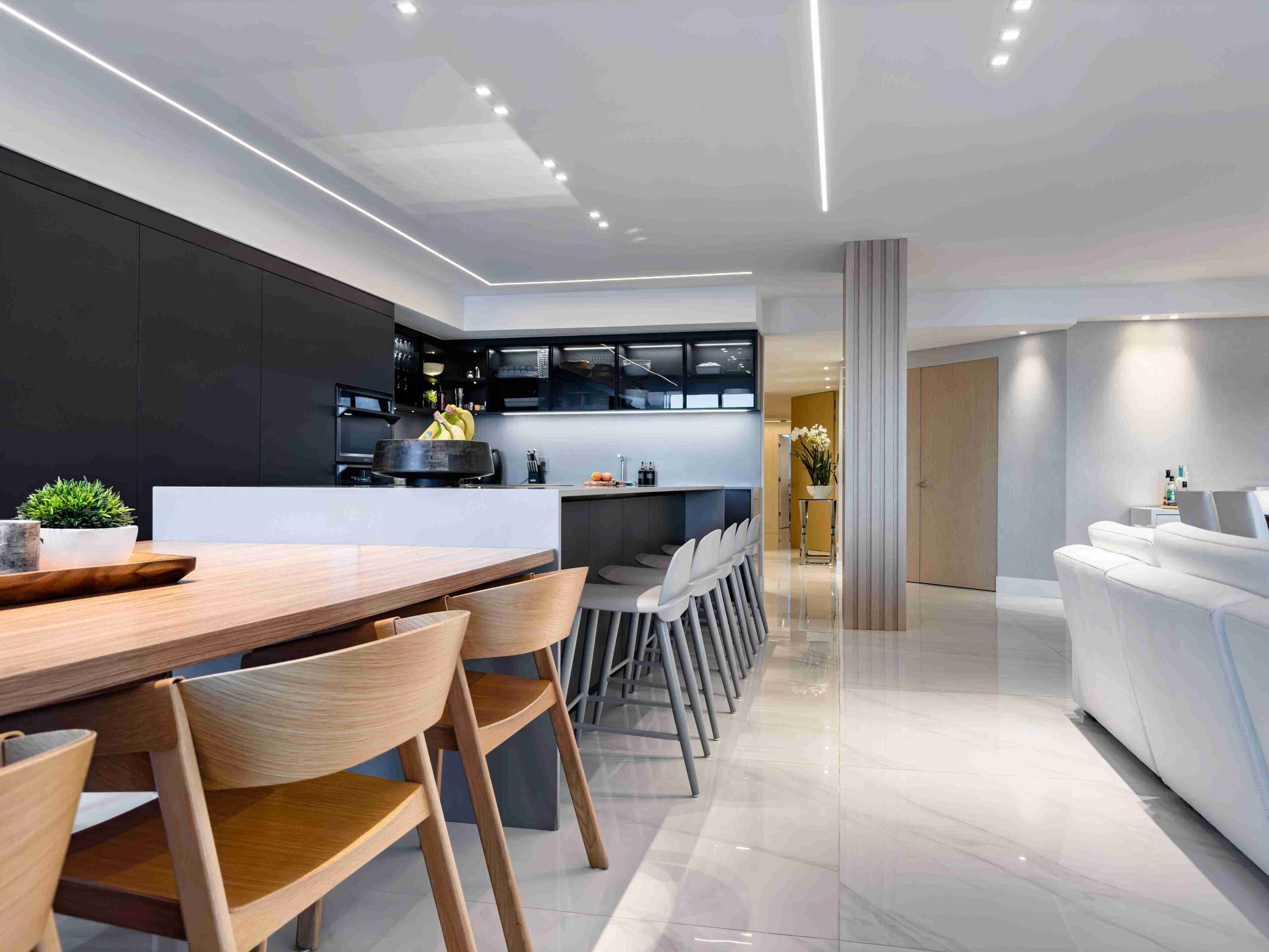 This Aventura Peninsula condo was fully reimagined with a focus on style, functionality, and playful sophistication. The master wing was thoughtfully redistributed, and new finishes were applied throughout the space. A Mia Cucina kitchen, custom closets, and uniquely designed bathrooms combine modern elegance with creativity. Wall coverings, lighting, and plumbing fixtures were carefully curated to enhance the home’s personality, resulting in a cohesive, contemporary residence that balances luxury with livability.